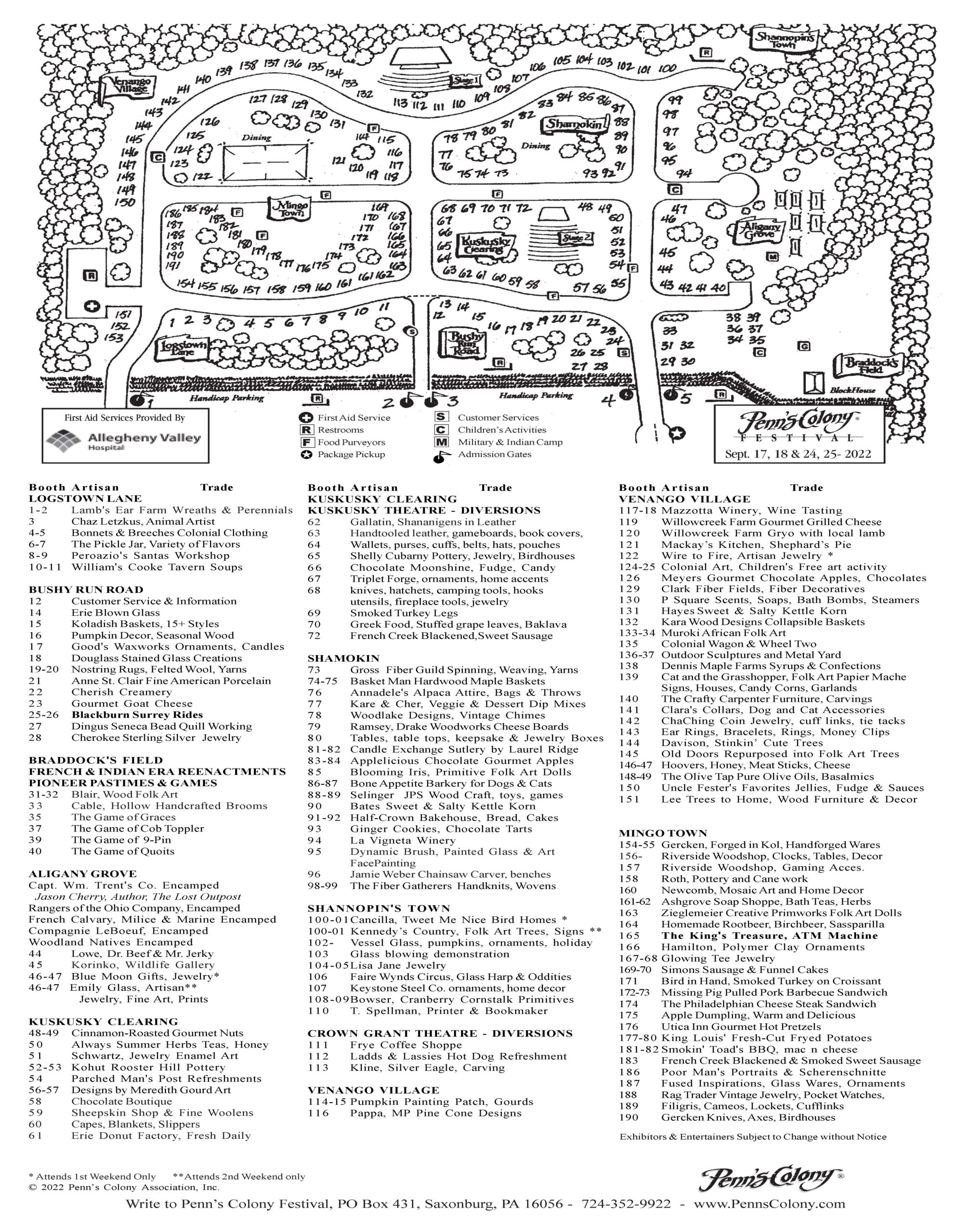 If you are seeking information for a specific artisan, please contact us at info@pennscolony.com or call at 724-352-9922.
